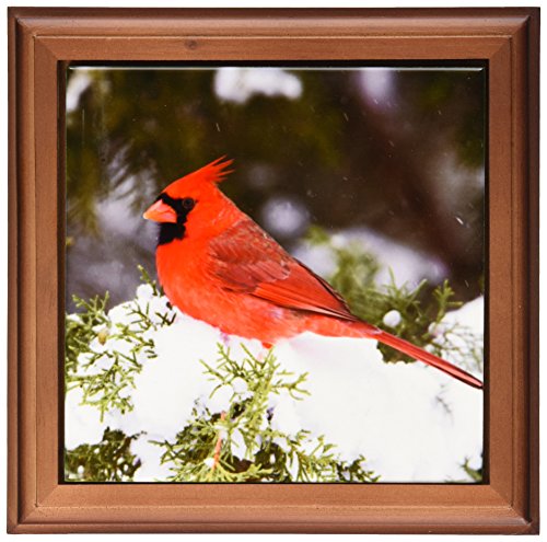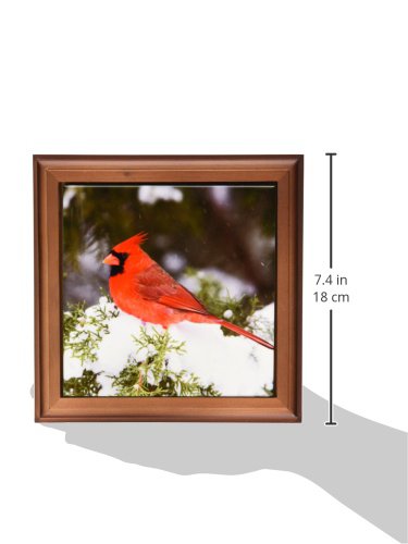 3dRose ft_209785_1 Northern Cardinal Male in Juniper Tree in Winter Marion Illinois USA Framed Tile, 8" x 8"
