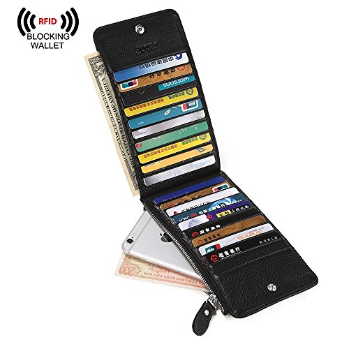 Binding : Apparel Product Description S-ZONE RFID Blocking Women's Genuine Multi Card Organizer Wallet with Zipper Pocket