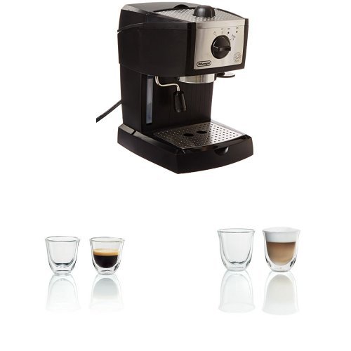 DE'LONGHI EC155 15 BAR PUMP ESPRESSO AND CAPPUCCINO MAKER WITH SET OF 2 ESPRESSO AND CAPPUCCINO GLASSES