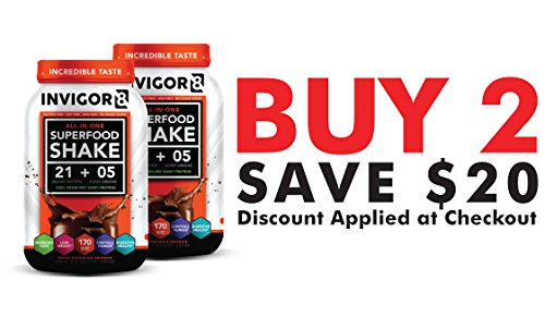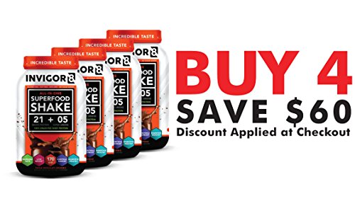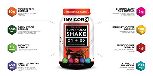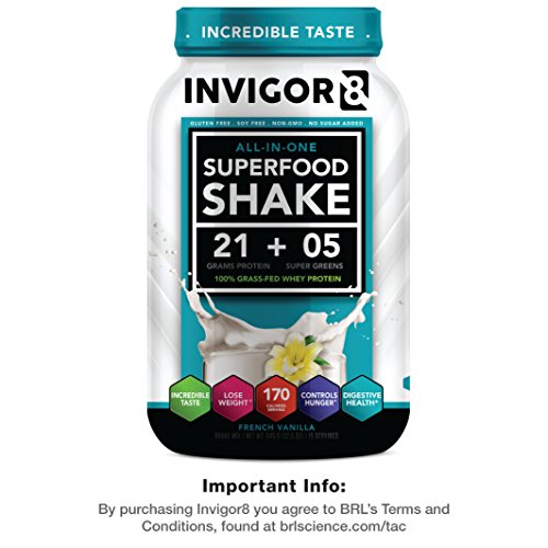 INVIGOR8 World's Most Complete Nutritional Shake and Green Superfood All Natural Everything INVIGOR8's comprehensive + complete formula of 8 unique complexes is 100% of everything you want-and nothing you do not. Every sip you indulge in guarantees you'll be treating your body to 100% Organic. 100% Natural. 100% Delicious... Grass-Fed Whey Protein. Hormone-Free Colostrum. Balance of All 3 Essential Omega Fatty Acids from Chia + Flaxseed. Power-packed Greens from Kale, Spinach, Broccoli, Alfalfa, Chlorella. Plant Based Fiber to Keep Hunger at Bay. Clinically Tested Cognition Enhancers for Laser-Sharp Clarity. Natural Immunity Boosters to Support Your Fast-Paced Life. Restorative Digestive Aids to Increase Uptake of Nutrients. Plus the Perfect Balance of Dairy-Free Pre-Biotics and Pro-Biotics. Highlights: INVIGOR8 - First Complete Meal Replacement Shake Made With Only Natural Ingredients Reduce Body Fat and Control Hunger - Only 170 Calories/serving 100% "Grass-Fed" Whey Protein + Probiotics + Green Veggies + Cognitive Enhancers Gluten and Soy Free / No Artificial Ingredients / Non GMO Incredible Taste - Triple Chocolate Brownie Flavor FAQ: Is Invigor8's blend of stringently sourced nutrients the best on the market? Yes, in fact every delicious sip of Invigor8 is 100% Natural, 100% Organic, gluten-free, soy-free, antibiotic-free, hormone free and contains only non-GMO ingredients that are free of preservatives, artificial sweeteners, refined sugar, and dyes. How Quickly Will I Receive Invigor8 after I order? You will see your order of Invigor8 show up within 2-3 days of when you placed your order. International orders will take longer. Is Invigor8 the right take-along nutrition if I need a full meal replacement? Yes, in fact many people keep it in their office desk, their car, and their home because it's the easiest, and most delicious way toFeature