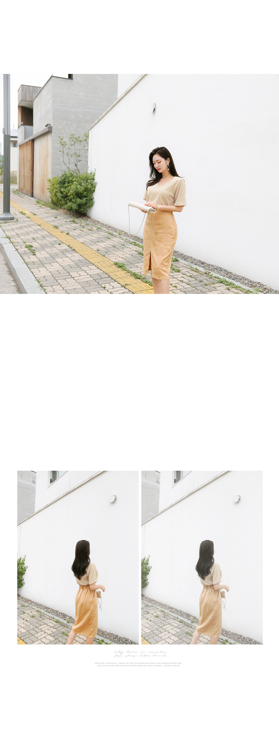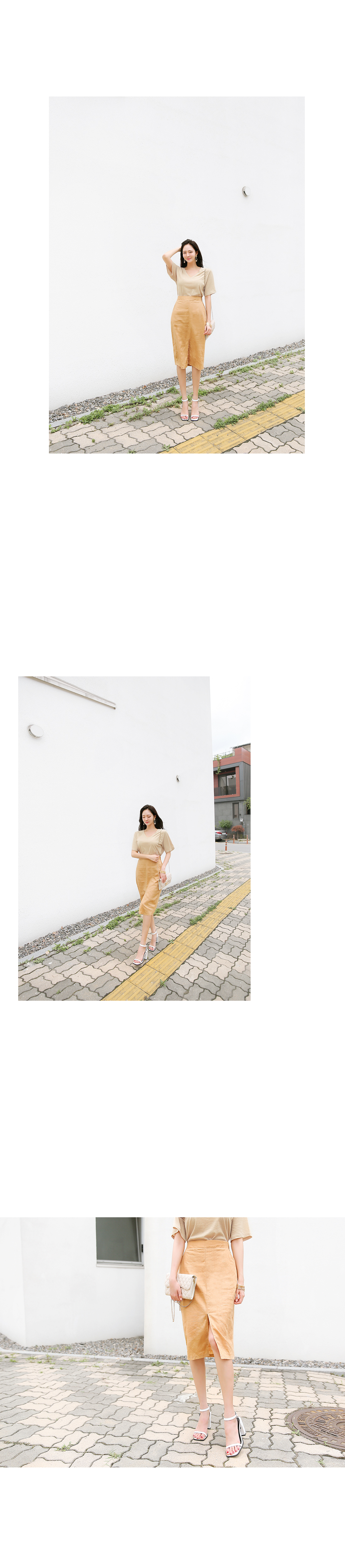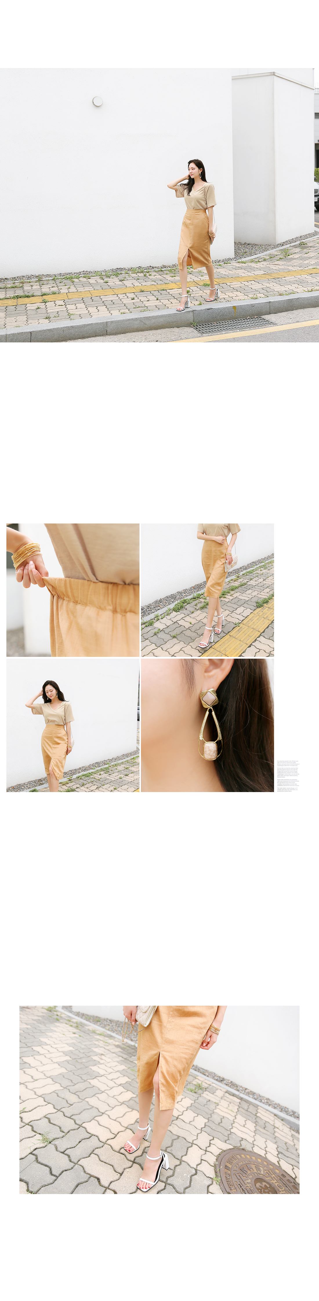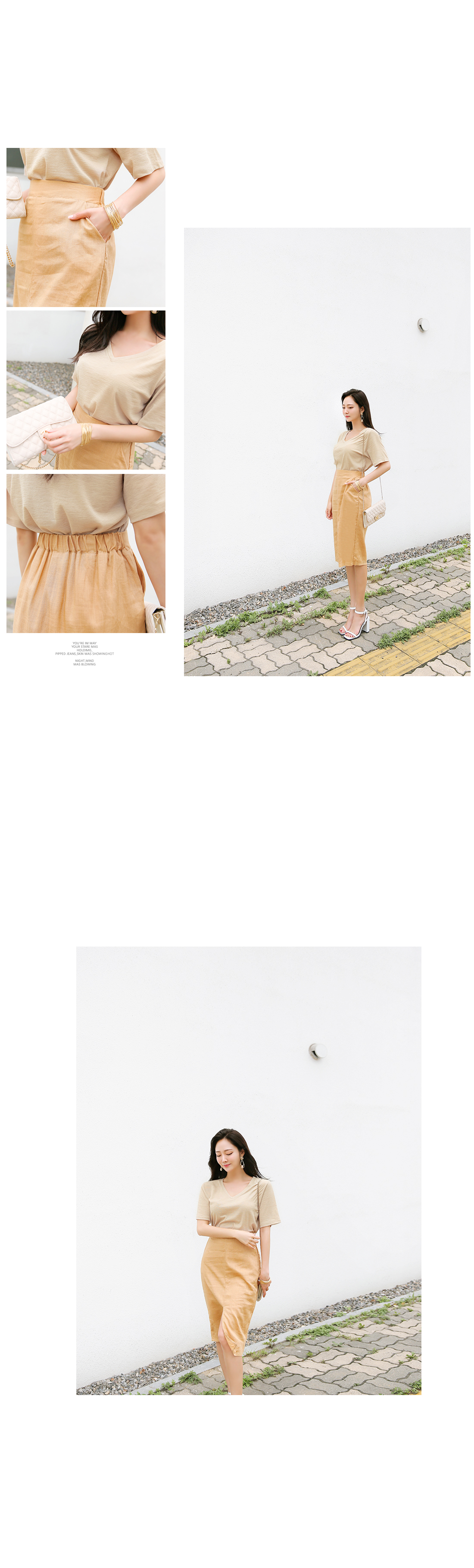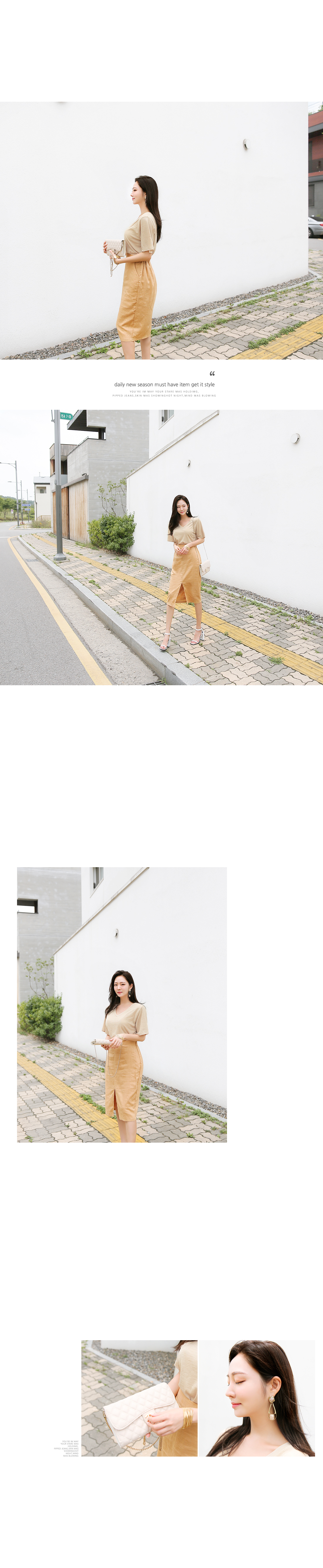 살짝 쇄골라인이 드러나는 V 네크라인으로,