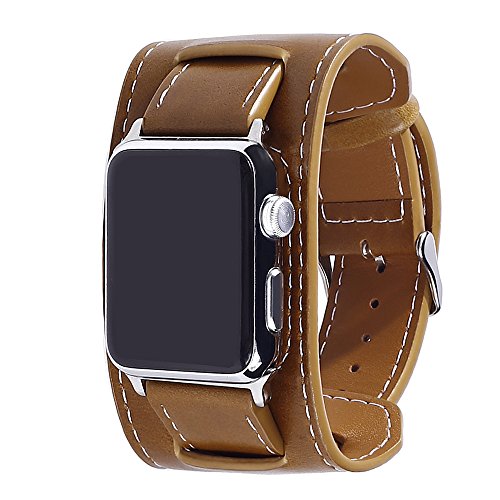 -. Title : Apple Watch Band, Fullmosa Full-Grain Leather Cuff Band iWatch Replacement WristBand with Metal Clasp for iWatch Series1 Series2, All Editions, 42mm Brown