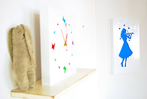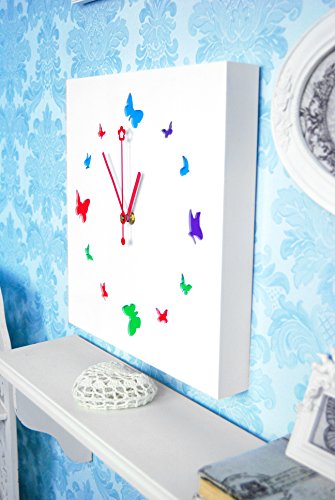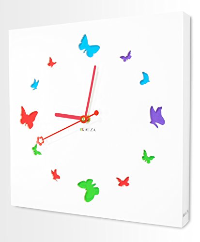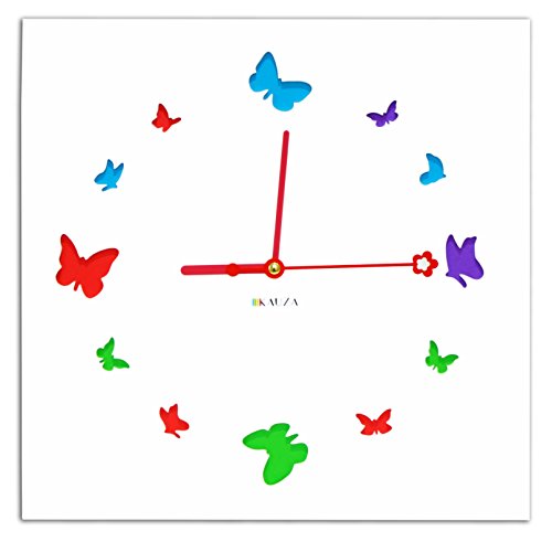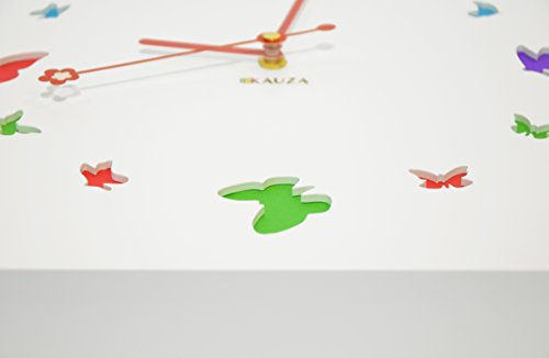 Contemporary Wall Clock with 3D Laser Cut Out Colourful Butterflies Wooden Frame by Kauza