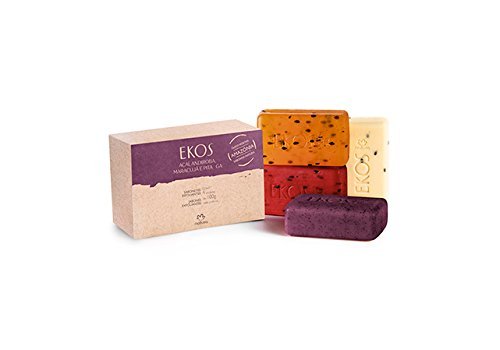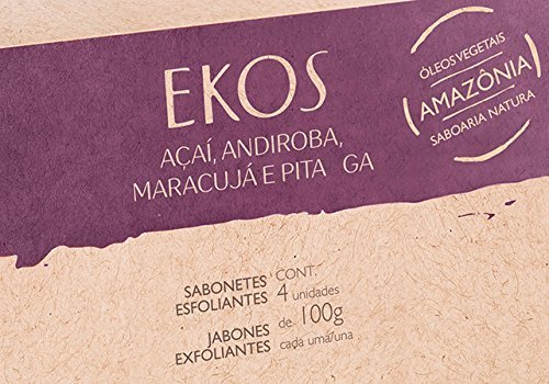 Linha Ekos Natura - Sabonetes em Barra Puro Vegetal Sortidos Esfoliantes (Acai, Andiroba, Maracuja e Pitanga) 4 x100 Gr - (Assorted Exfoliating Pure Vegetable Bar Soaps 4 x Net 3.5 Oz)