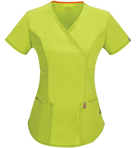 A contemporary fit mock wrap top features three patch pockets with a bungee i.D. Loop, double princess seams, a flattering belt at the waist, signature mesh binding at the back neck, double needle stitching and a shirttail hem. Center back length: 26 inch