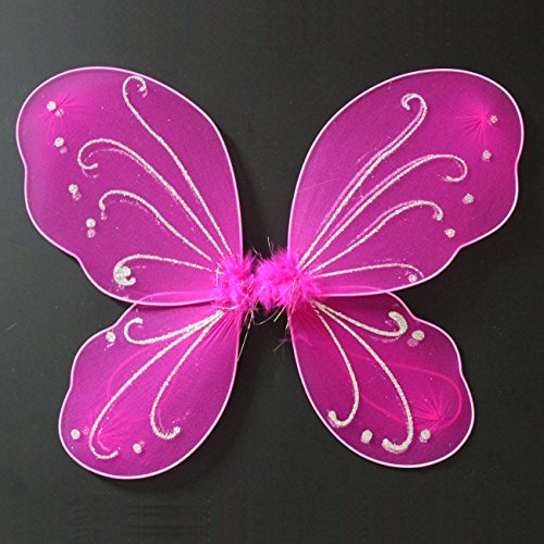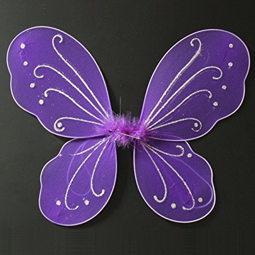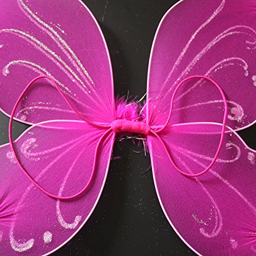 butterfly fairy wings in this Party Favor Sets;Sparkling and twinkling, these best-selling girls fairy wings are made of 100% nylon and embellished with glitters and the touch of a sparkling organza flower in the center. The shoulder strap gives great comfort and the straps are worn over your little princesses shoulders like a back pack. Great for any fairy princess parties dress up play and party favors. Pair with any of our costumes from our Party Accessories and Supplies.Feature