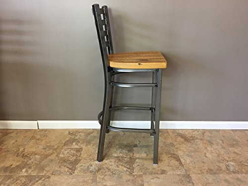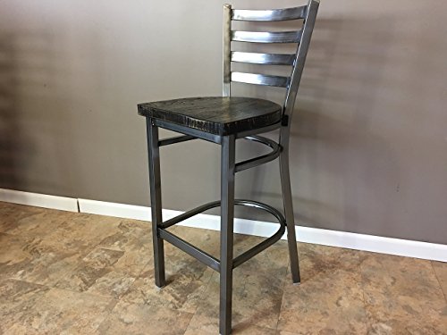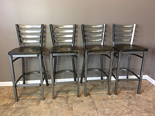 -. Title : Reclaimed Wood Seat Bar Stool | With Ladder Back Metal Frame | Set of 4 | Restaurant Grade | High Quality |30 Inch High Barstool