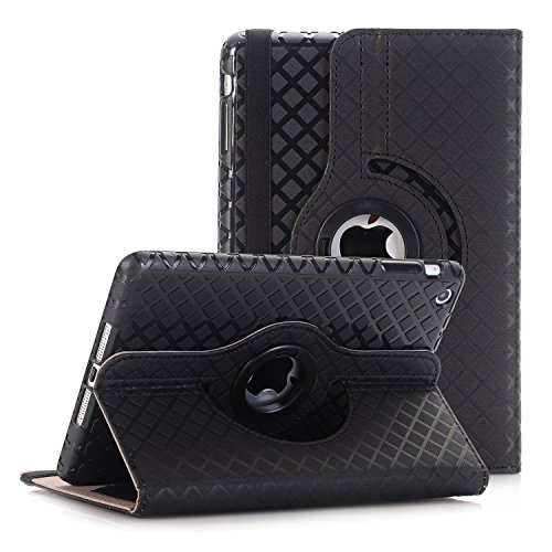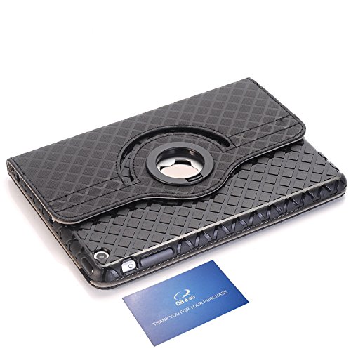 QBeau Apple Ipad Mini 1 2 3 Case Cover 360 Degree Rotating Stand PU Leather Protective Flip Folio Detachable Soft Silicone Rubber Cover for Apple Ipad Mini 1/2/3 with Card Slot,Black