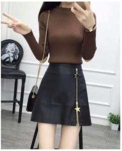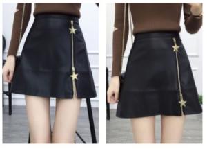 レザーのハード感とスターチャームの可愛さが印象的なミニスカート♪
