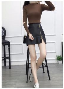 サイドジッパーはお好きな位置まで開閉できるので、スリットデザインにもなりますよ!