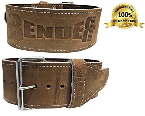 Our superior leather weight belt is made of 100% vegetable tanned leather, this belt provides exceptional lumbar support that lets you perform at the highest level during your workouts. Quality materials won't break or wear out over time and are guaranteed to last. We also believe that premium products should help you break PRs not your bank account. We strive to deliver excellent equipment without digging into your pockets. If you're serious about lifting weights then you know how important a quality weightlifting belt can be to workouts. Bender Belts will help you lift more efficiently and effectively while reducing the chances of a painful injury. That's why you should minimize the chances of injury and maximize your results in the gym utilizing the no nonsense Bender Belt. Unlike cheap belts made of inferior materials, ours is made of top-quality cowhide that won't stretch out or wear under high usage. It also has a secure, heavy-duty single prong buckle that ensures easy and long lasting use. The 10mm thickness of the belt provides excellent support for your body's core and spine, so that it can support you during the heaviest lifts. This is the most comfortable weight belt you can find. With its single prong adjustable design and suede leather lined, non-slip fit, you won't have to worry about constant readjustments or digging into your sides. This belt is simply designed for the most intense workouts. Sizing: Comes in 4 sizes S (23"-30" waists) M (26"-33" waists) L (29"-36" waists) XL (33"-40" waists). For most accurate size, measure around your bellybutton and lower back. THIS IS NOT YOUR WAIST SIZE. Made of quality 100% leather 4" height 10mm thickness Full lumbar support Durable single prong, metal buckle Classic vegetable tanned color Hand-wash with damp cloth Great for Crossfit, body building, weightlifting, powerlifting, and other high intensity training that requires high stress. Click "Add to Cart" to buy now!