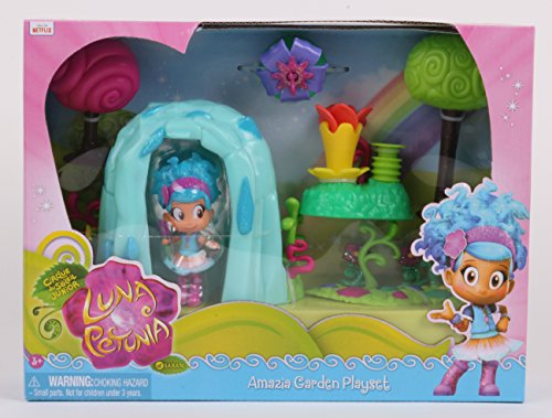 ReleaseDate : 2017-09-10 Studio : Funrise Inc. Publisher : Funrise Inc. Binding : Toy Product Description Luna Petunia, Luna Petunia, how does your garden grow? Amazia is full of incredible and beautiful places, but no place is as pretty as Luna’s garden. This play set includes an exclusive 3.5” garden themed Luna figure, colorful plants, the magical fun mirror cave and more. Press a button to see the flower magically grow or walk Luna and her friends down the crystal-studded path! Appropriate for ages 3 and up. 0
