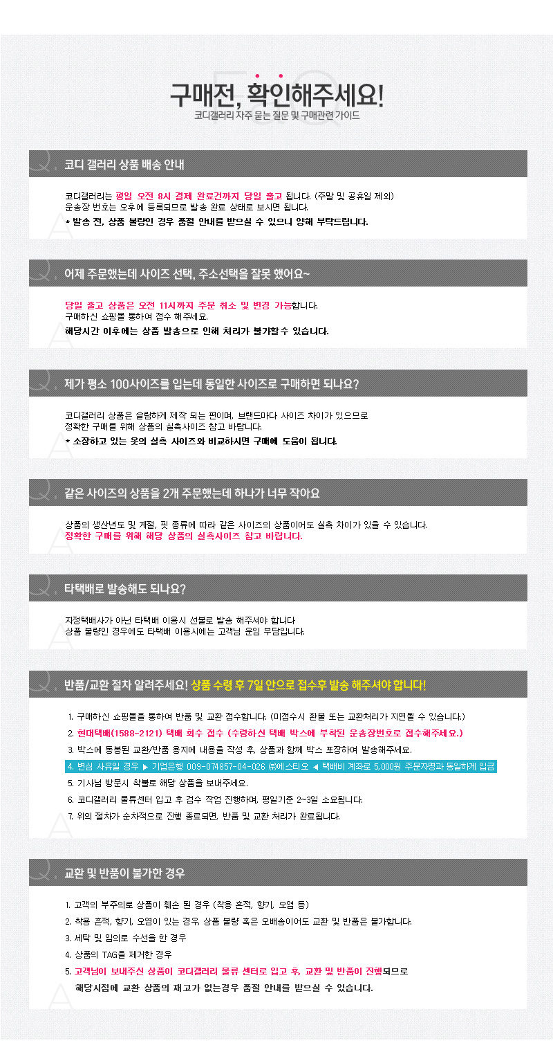 특이 사항 배송, 변경, 반품 환불에 대한 문의는 위 연락처로 문의 주세요.