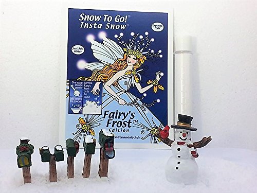 Winter Holiday Fairy Garden Accent Kit, Snow covered Mailboxes and Snowman-Bonus Fairy Frost Snow to Go