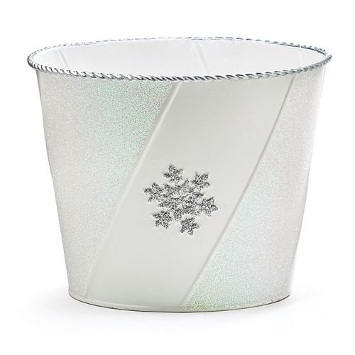 Burton & Burton Pot Cover 6" Tin White With Snowflake