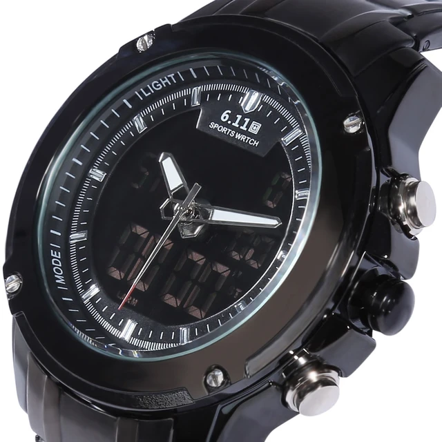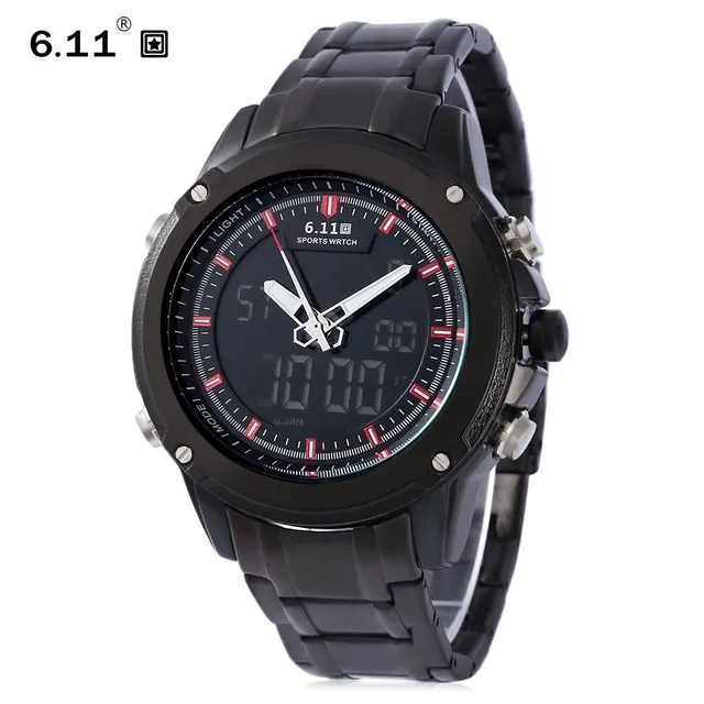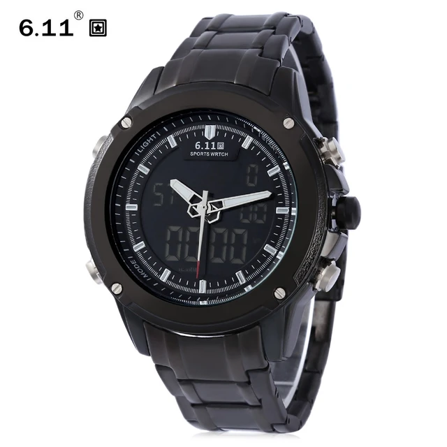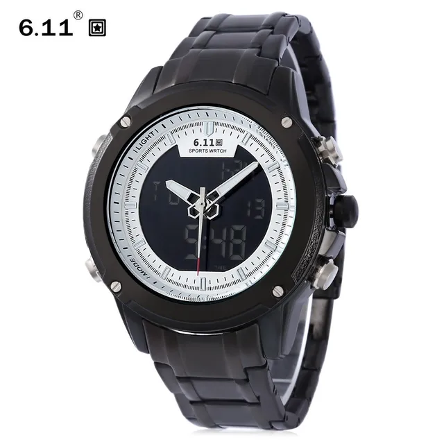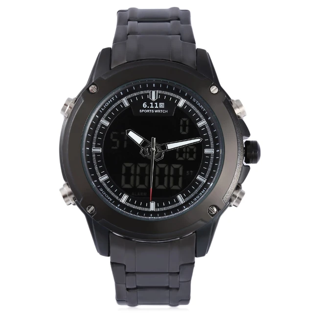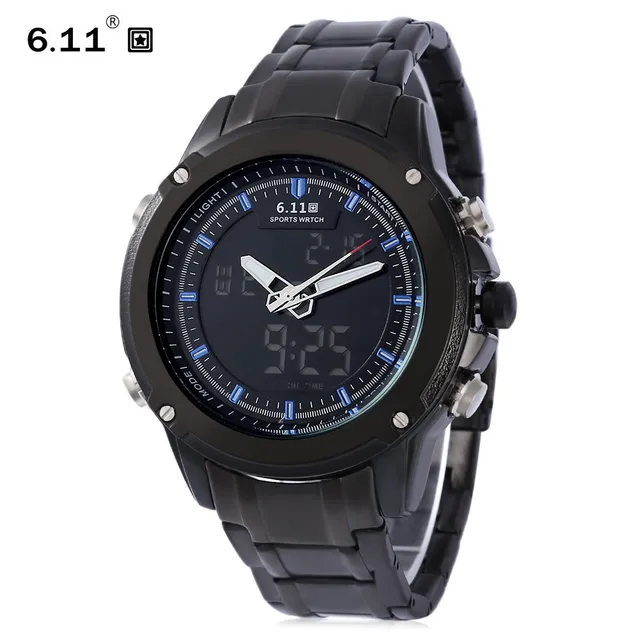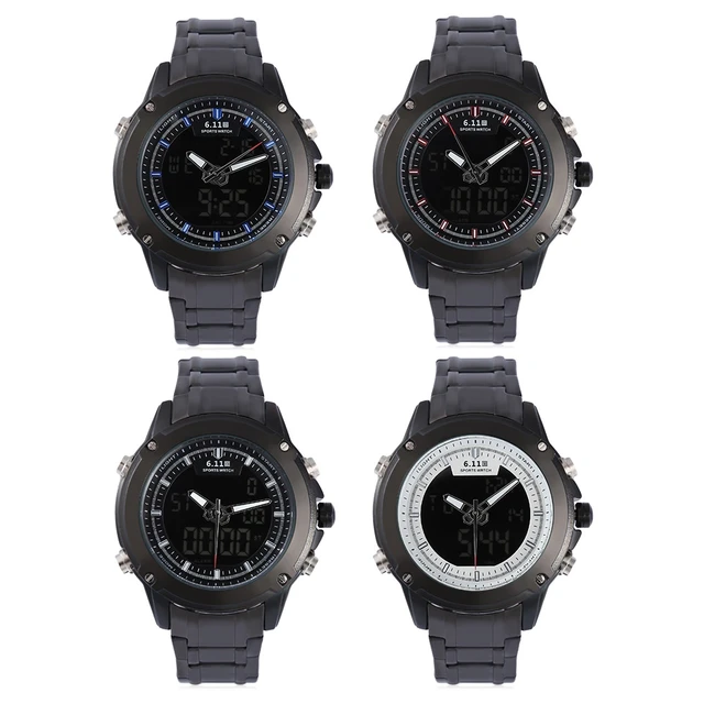 | [해외] 6.11 듀얼 Movt 남성 스포츠 시계 날짜 일 디스플레이 백라이트 스톱워치 알람 3ATM 시계 |
