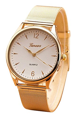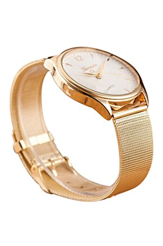 -. Title : GENEVA Gold Tone Mesh Band Round Dial Wrist Watch