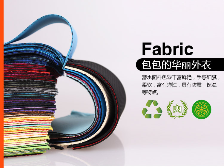 u0026nbsp; 潜水料Neoprene是由美国杜邦公司发明的高科技合成发泡橡胶材料,表面复合弹性布料后具有良好的伸缩性、弹性、优良的保温性能,手感舒适,外观精美。开始在国外是普遍用于制作高级潜水衣的材料所以大家通俗称为u0026amp;ldquo;潜水料u0026amp;rdquo;。这是一种非常好的材料,非常厚实,并且有一定弹性哟,手感非常柔和舒适。最重要的是非常非常健康,经过了欧盟SGS和美国FDA的严格检测,绝不含任何对人体有害的物质!