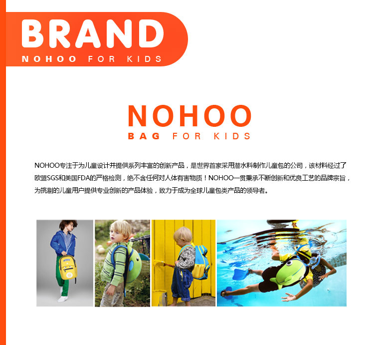 诺狐采用独特的Neoprene潜水料,有别于一般材质,潜水料具有良好的柔软性与弹性,防水防潮,质地轻盈等特点,有适用于专业潜水衣及各种运动领域,其立体塑形极具个性的特性更风靡时尚圈。诺狐童包独特的设计与良好的材质有别于一般的儿童包,立体结构剪裁,鲜艳大胆的配色,打材料的特性发挥到淋漓尽致,为我们的用户提供缤纷、舒适、健康的产品体验。