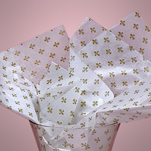 (Rustic Pearl Collection)/Stationery Party Supplies/Gift Wrapping Supplies/DIRECT FROM USA/Printed Tissue Paper for Gift Wrapping with Design (GOLD FLEUR DE LIS), 24 Large Sheets (20x30)