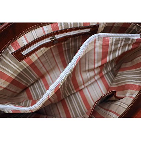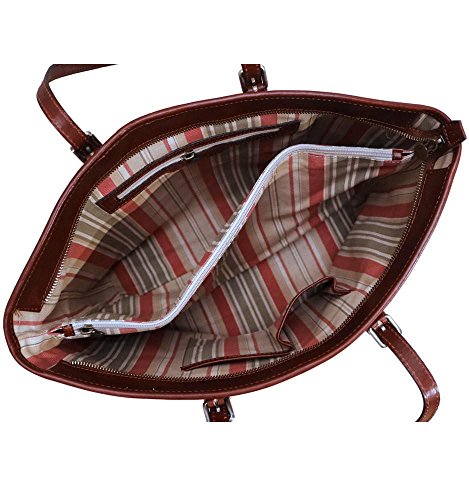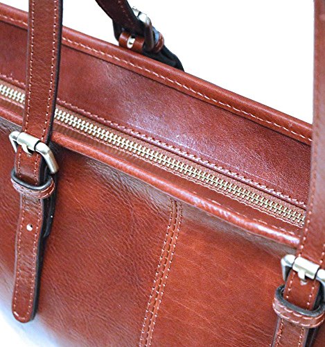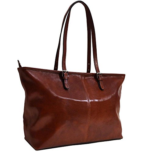 Product Description Firenze Shopper Tote bag is crafted with full grain vegetable tanned calfskin leather. This leather was handmade Etruscan style in Santa Croce to soften, patina, and develop a silky touch. Only vegetable extracts and natural oils were used to create rich, vibrant color and a tender, semi-gloss finish. The interior has a middle zip sleeve divider for tablet and tech storage and 2 charger smartphone pockets. The Firenze Shopper leather bag is available in Vecchio Brown. Made in Italy. ? 11"h x 14"l x 5"w (top widens to 18") ? Full Grain Calfskin Leather ? Zip Tablet / Laptop Sleeve Compartment - 15" x 9" ? Charger Smartphone Pockets / Inside Zip Pocket ? Brass Zipper Closure ? Adjustable Shoulder Straps: 9" - 11" Drop 0