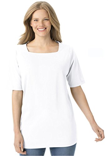 -. Binding : Apparel -. Brand : Woman Within -. Department : womens -. Feature : relaxed fit allows for freedom of movement / your favorite 28" T-shirt length falls to below the hips / square neck is open and comfortable / elbow sleeves have armholes expertly shaped for ease / beautiful exclusive colors -. Label : Woman Within -. Manufacturer : Woman Within -. ProductGroup : Apparel -. ProductTypeName : SHIRT -. Publisher : Woman Within -. Studio : Woman Within -. Title : Women's Plus Size Perfect Square Neck Tee Shirt