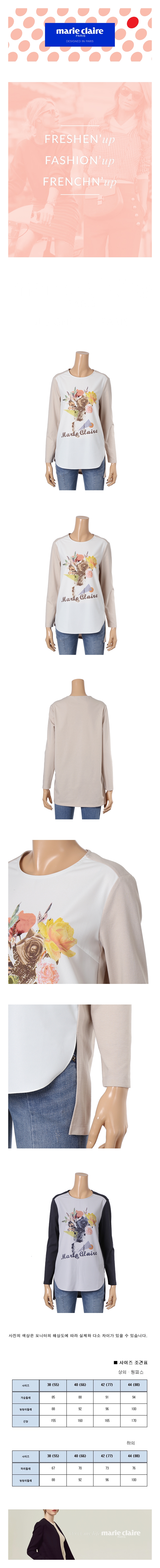 깔끔한 라운드 넥에 프린트가 포인트인 기본 티셔츠로 앞, 뒤 소재를 다르게 줘서 더욱 멋스럽게 블라우스 대용으로 착용하셔도 좋은 상품입니다.