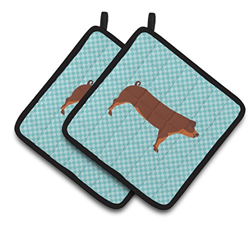 Caroline's Treasures BB8116PTHD Duroc Pig Blue Check Decorated Pot Holder, 7.5" x 7.5", Multicolor