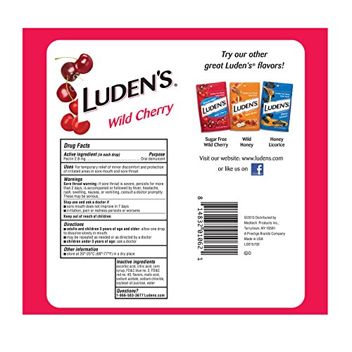 ReleaseDate : 2016-10-01 Studio : Medtech Product Inc. Publisher : Medtech Product Inc. Binding : Health and Beauty Product Description Soothe your throat with Luden's Wild Cherry Throat Drops. For over 100 years, Luden's has made the great tasting throat drops for irritated throats. Enjoy deliciously soothing relief with our delicious Watermelon throat drops. 0