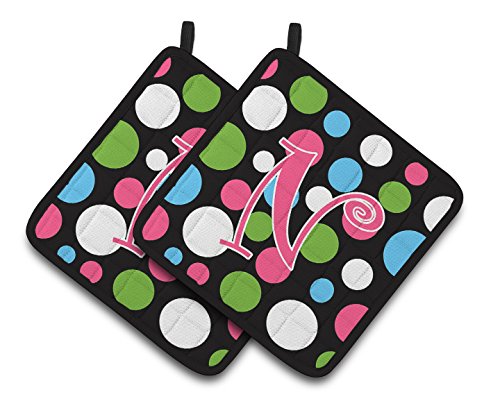 Caroline's Treasures Monogram Initial N Polkadots & Pink Pair of Pot Holders CJ1038-NPTHD, 7.5HX7.5W, Multicolor