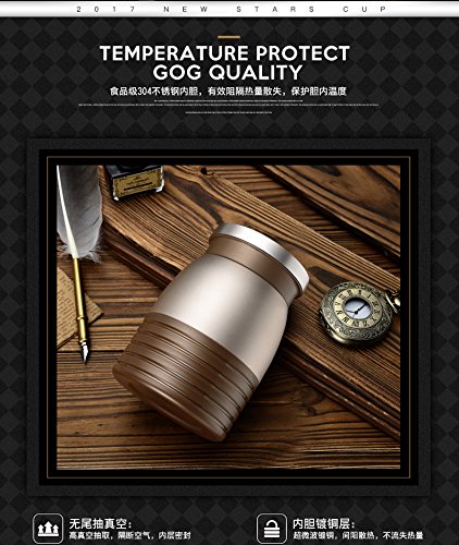 - SMALL AND PORTABLE---Small body contains 280ml capacity, put into the bag does not leak proof or spill when go out, always add moisture for you. 2 impenetrable WALLS OF STEEL is an vacuum space. WHY? Incredible insulation that an adventurer need. A layer of copper surrounds this hidden space for even further protection from the elements. AND it's sweat-free. WARNING - drink in bottle may be colder than it appears!