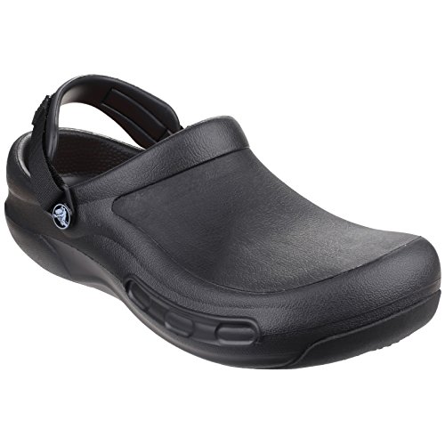 -. Binding : Shoes -. Brand : crocs -. Color : Black -. Department : mens -. Feature : Fit: This style tends to run large. For an accurate fit we recommend purchasing a 1/2 size smaller than you typically purchase. For example, if you normally purchase a size 7 1/2, we recommend purchasing a size 7. / Features of this item include: Cushioned, Healthcare and Service, Summertime Sale -. Label : Crocs Footwear -. Manufacturer : Crocs Footwear -. Model : crocs 15010 -. MPN : 15010M-100 -. NumberOfItems : 1 -. PackageQuantity : 1 -. PartNumber : 15010M-100 -. ProductGroup : Shoes -. ProductTypeName : SHOES -. Publisher : Crocs Footwear -. Size : 14 M US -. Studio : Crocs Footwear -. Title : Crocs Unisex Bistro Pro Clog