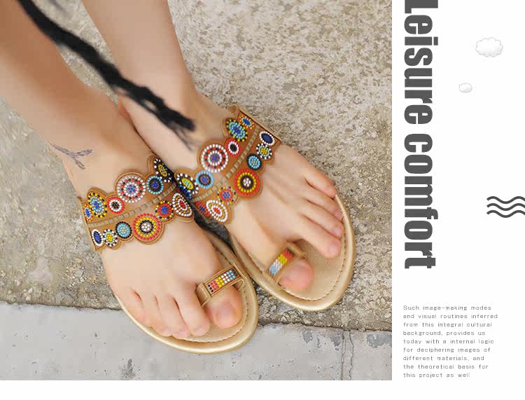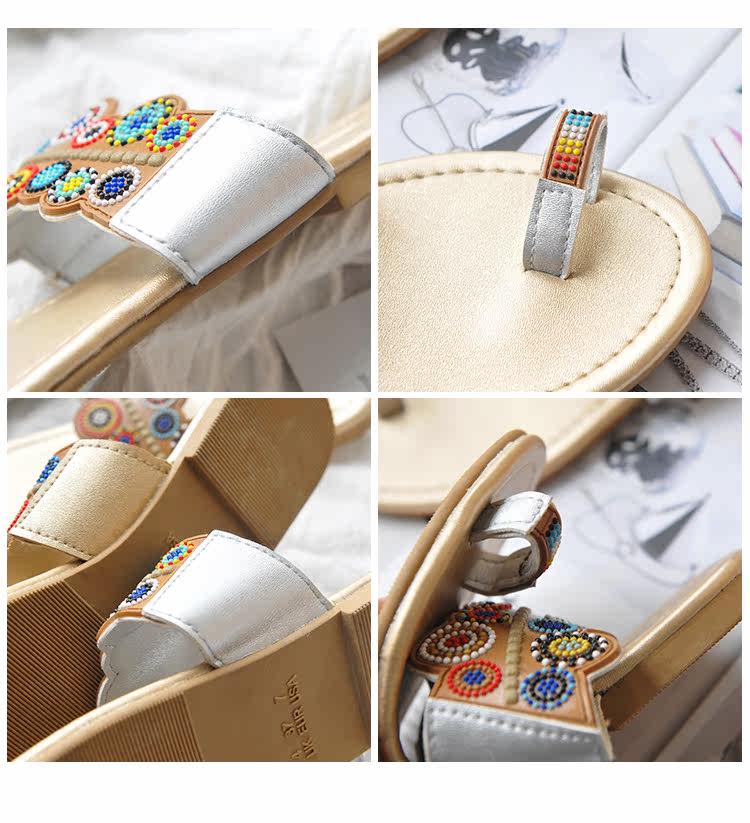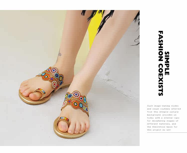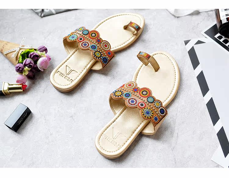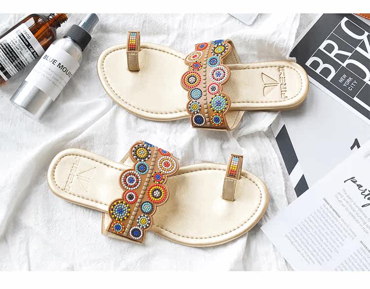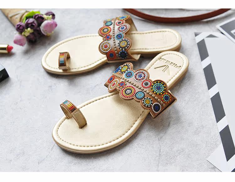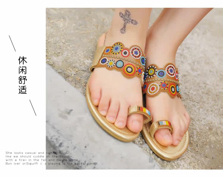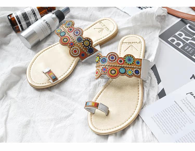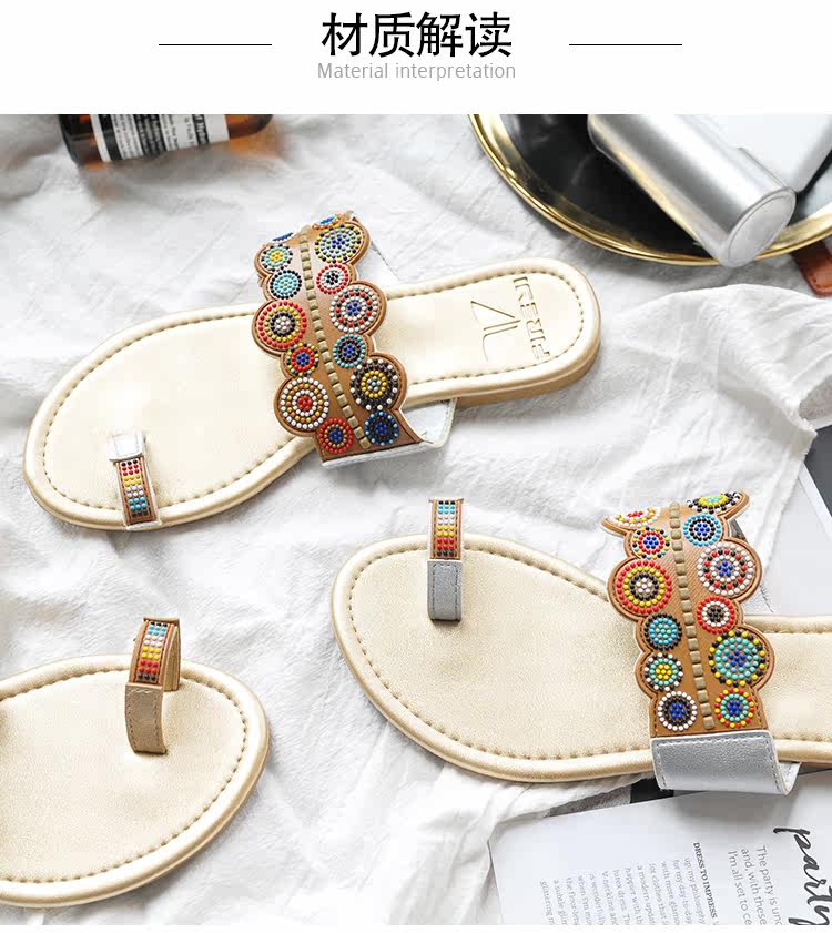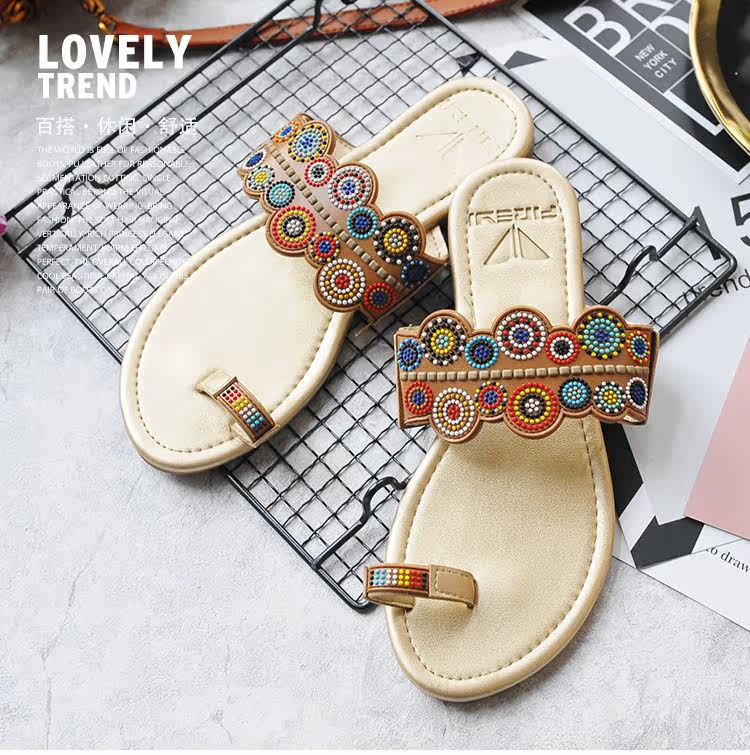 夏季新款套趾女沙滩拖鞋时尚平底凉拖鞋防滑夹脚波西米亚花朵