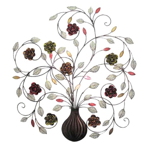 Home Source 400-21890 Decorative Metal Wall Art, Vase with Flowers, 28.66-Inch x 32-Inch