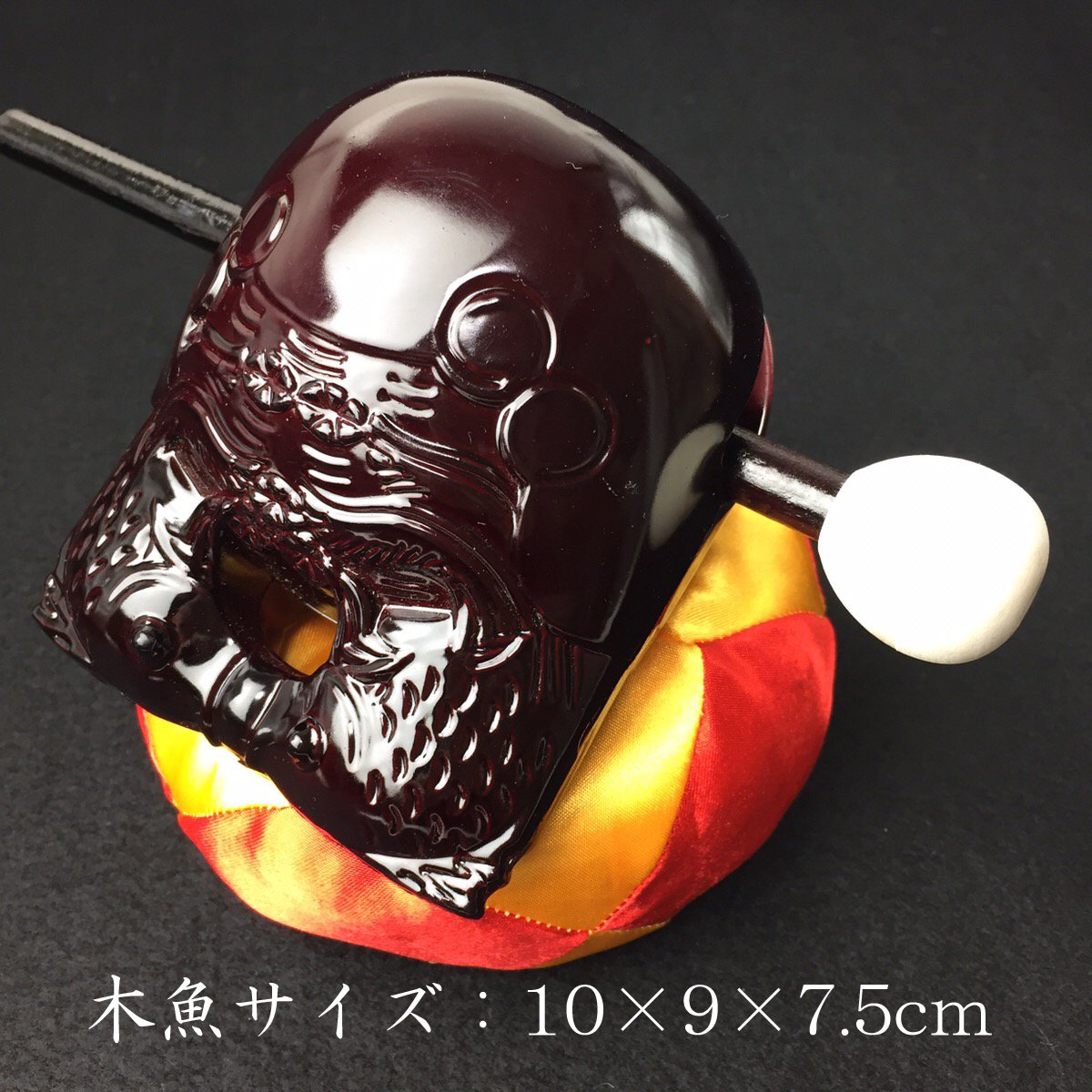 Size: wood fish 10 × 9 × 7.5 cm Weight Approximately 133 g Bai (sticks hitting wood fish) Length about 20 cm Cushion diameters About 12 × height about 5 cm