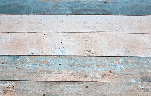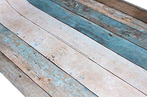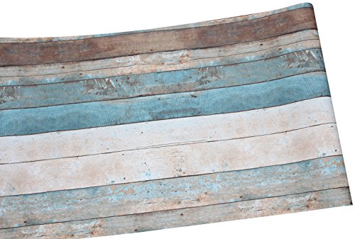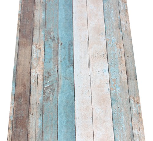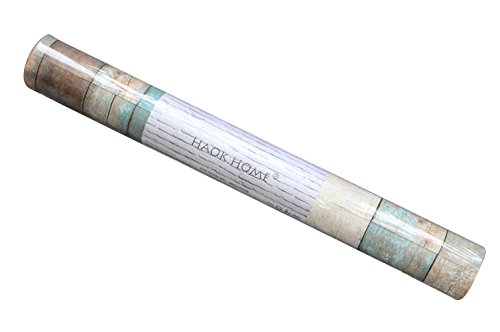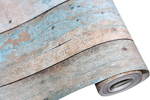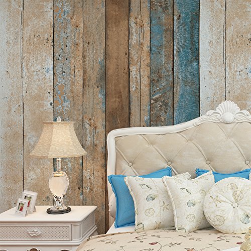 HaokHome 208 Distressed Wood Plank Wallpaper Rolls Turquoise Blue/Sand/Brown Wooden Plank Murals Home Kitchen Bathroom Decoration 20.8" x 33ft