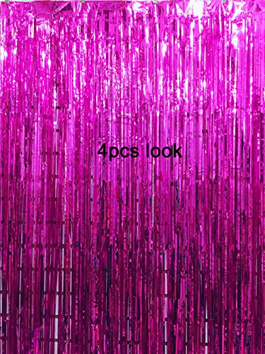 Anleolife 2PCS Metallic Foil Fringe Curtains 3 ft W. x 6.6 ft. For Bridal Baby Shower Backdrop Birthday Party Photo Booth Graduation Party Photo Wall Base...