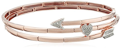 This 1/5 cttw diamond bangle is constructed of several individual sterling silver links with a silver wire running through them allow the bangle to flex or stretch.