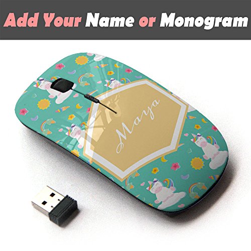 -. Binding : Electronics -. Brand : KawaiiMouse -. EAN : 6461864961939 -. Feature : PERSONALIZATION: Click "Customize Now" to choose your FONT STYLE and provide your NAME or MONOGRAM. Please see listing picture for the available font style. / Wireless curved mouse connects via USB receiver / For all laptop and desktop support USB 2.0 / Slim ergonomic mouse is perfect for home and office use / Optical tracking technology mouse works on many different surfaces -. Label : KawaiiMouse -. Manufacturer : KawaiiMouse -. ProductGroup : PC Accessory -. ProductTypeName : COMPUTER_INPUT_DEVICE -. Publisher : KawaiiMouse -. Studio : KawaiiMouse -. Title : Personalized Custom Monogram Name Optical 2.4G Wireless Mouse - Unicorn Rainbow