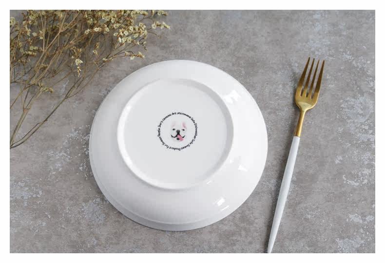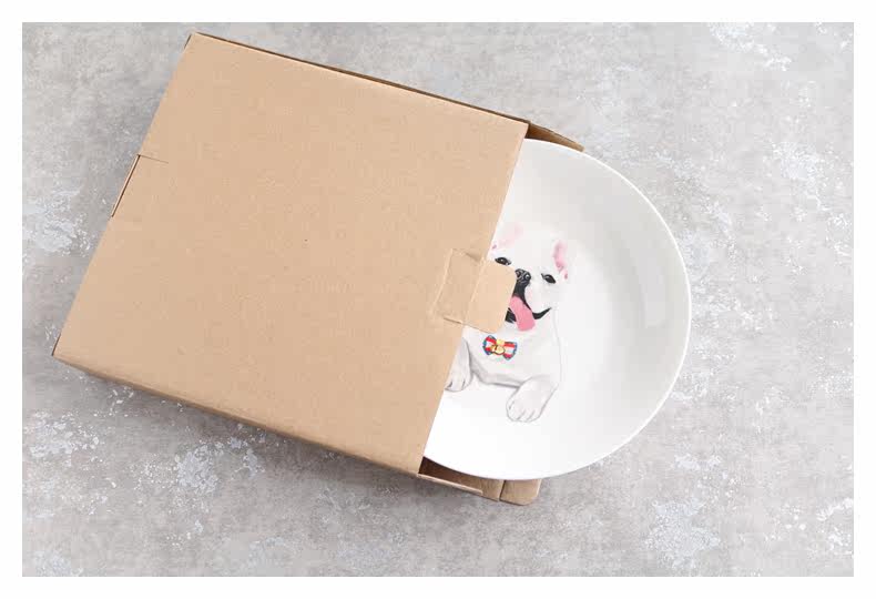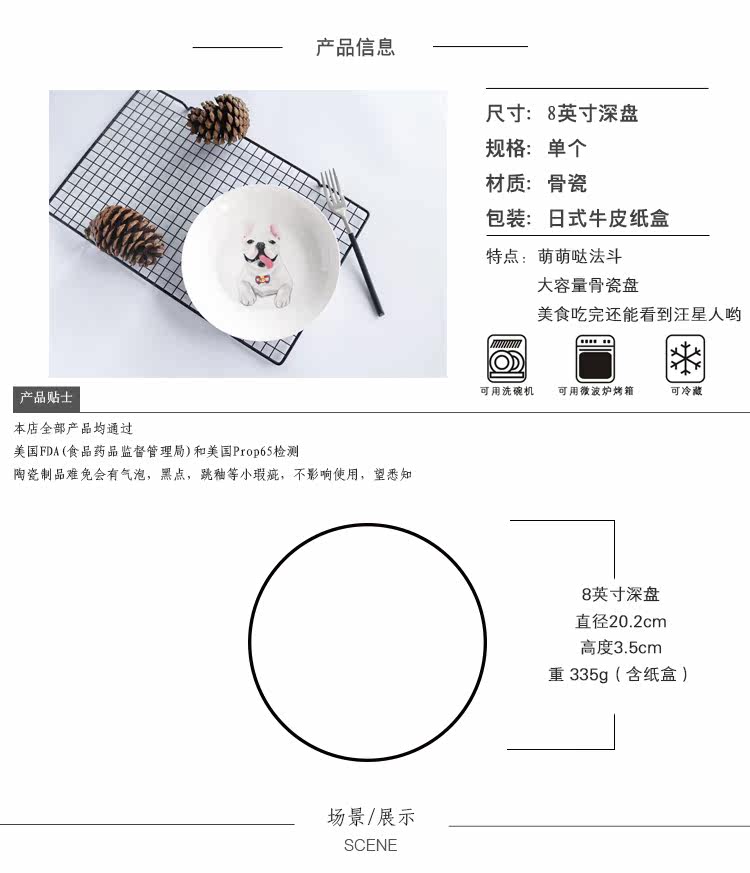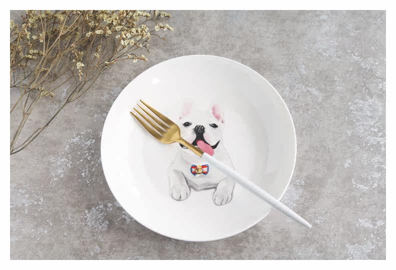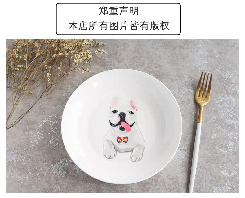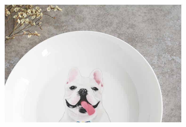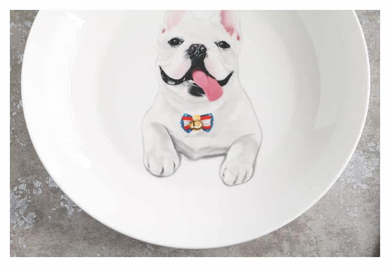 萌宠设计法斗系列家用陶瓷餐具创意可爱动物餐盘圆形深盘狗狗菜盘