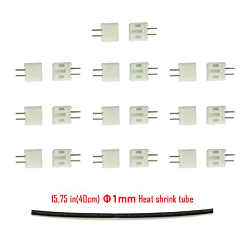 - Quantity: total 20 sets, including 20 x 2-pin PH 2.0 male connector plug with wire, 20 x 2-pin PH 2.0 female plug connectors, 40 x silicone wires (each color for 20 pieces),40cm(15.75inches)⌀1 Heat shrink tube