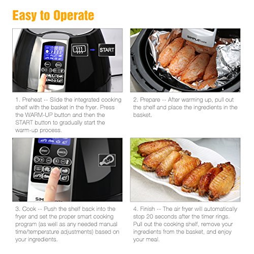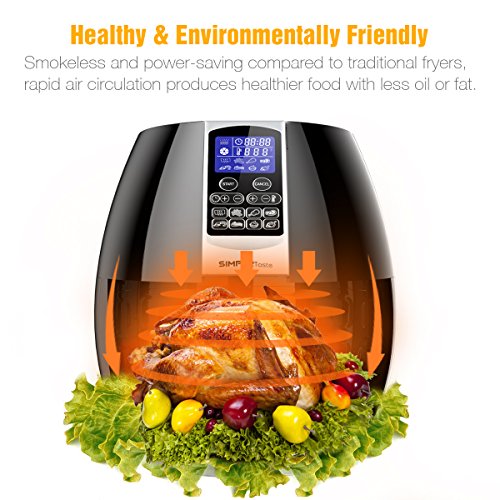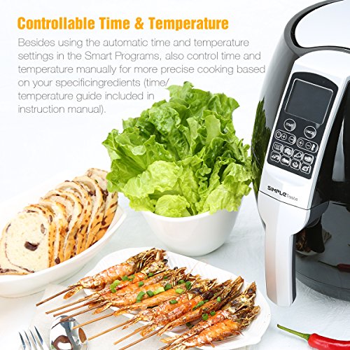 Cooking food with less or even no oil allows you and your family a healthier lifestyle. SimpleTaste Air Fryer uses rapid air circulation technology with multiple smart cooking programs to enable you to cook great food within 30 minutes or less.
