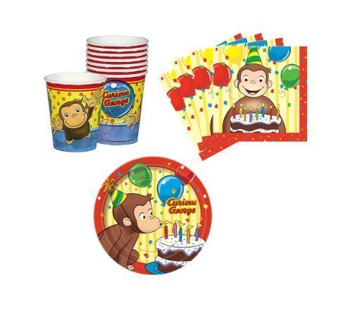 -. Title : Curious George Birthday Party Supplies Set Plates Napkins Cups Kit for 16 by Unique