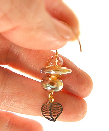 -. Title : 14K Gold-Filled Drop Earrings Gold Lampwork Glass Beads Leaf Charm by KittyKat Designs