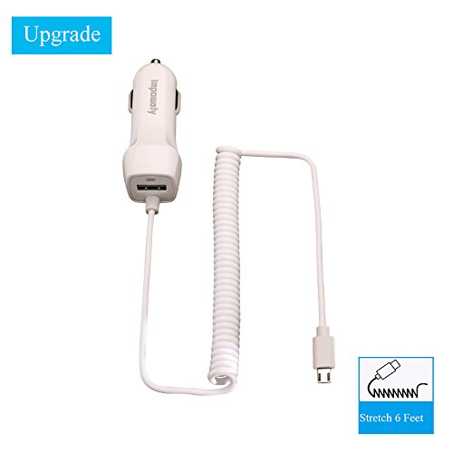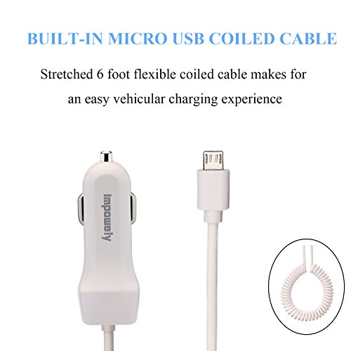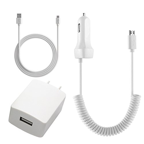 Impowely 3-in-1 Essential Home and USB Vehicle Ultra Rapid Car Charger Kit for Samsung Galaxy S7 S6 S3 S4 Note 2 Note 3 Galaxy Tab Coiled Cable (White)