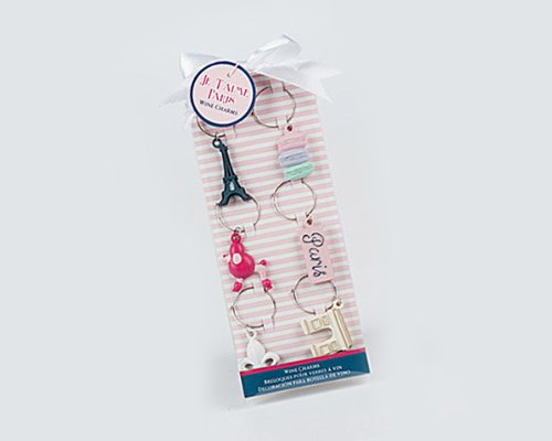 -. Title : Kate Aspen Parisian "Je T'aime Paris" Wine Charms, Pink/White