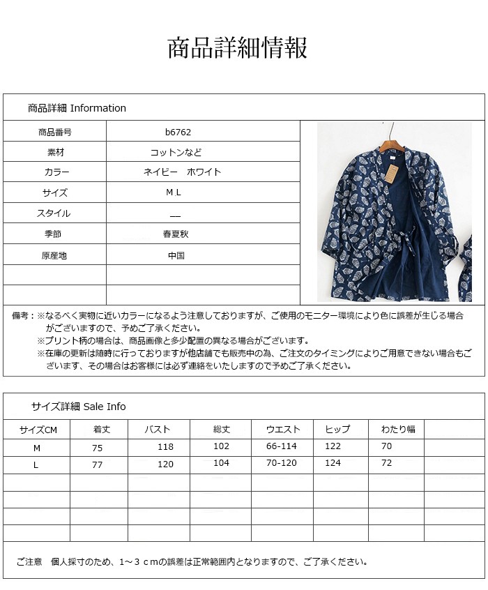 ■素材:コットンなど■カラー:ホワイト ネイビー■サイズ:M:着丈75 バスト118 総丈102 ウェスト66-114 ヒップ122 わたり幅70 L:着丈77 バスト120 総丈104 ウェスト70-120 ヒップ124 わたり幅72■原産地:中国