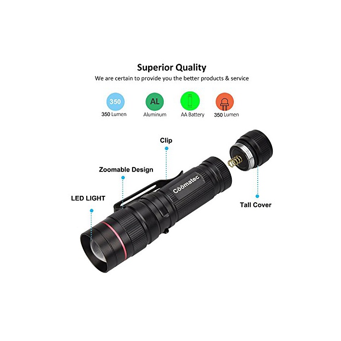 Gracetop 회중전등 소형 경량 led 방수 핸디 라이트 고휘도 줌식3모드 방수 방재 350루멘 SD-200(블랙)