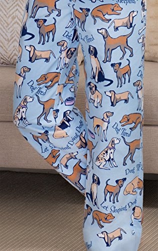 PajamaGram Women 's Dog Tired Pajamas with Long-Sleeved Top and Pants Blue Large / 12-14