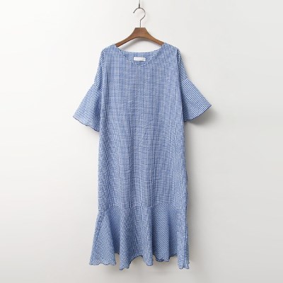 프릴소매가 돋보이는 여유로운 루즈핏 원피스.